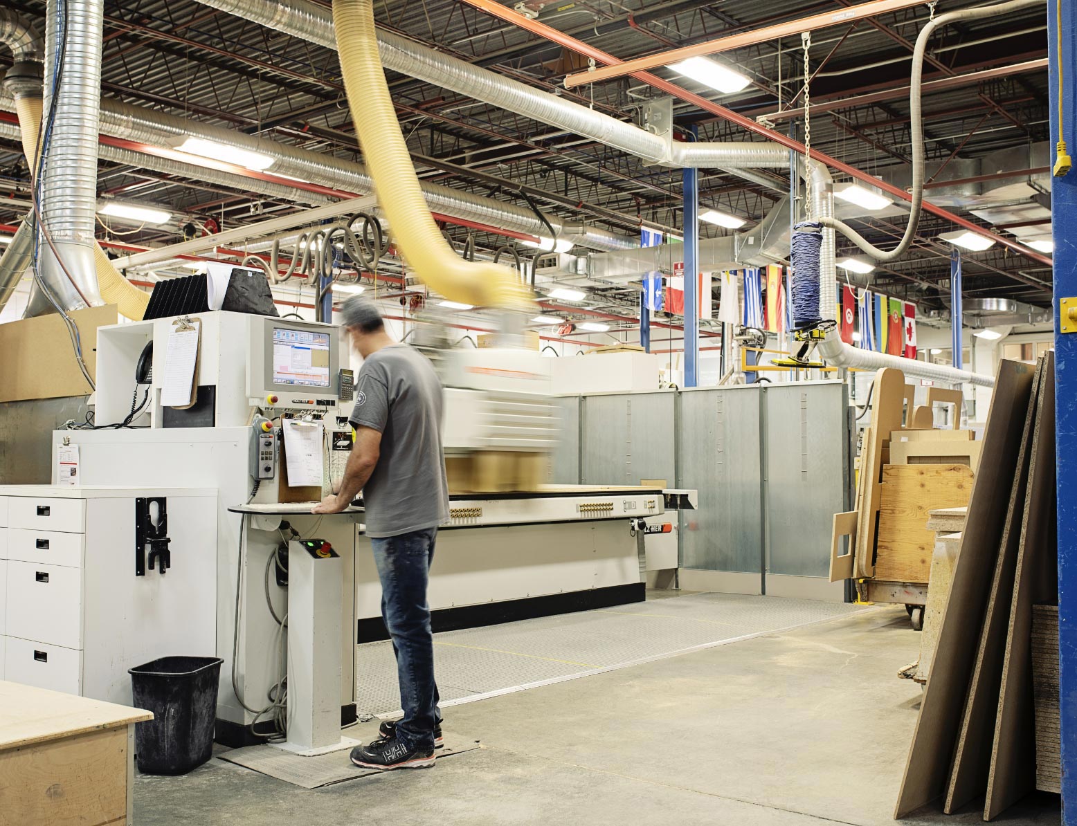 Our large fully air-conditioned millwork shop in the heart of Montreal features state-of-the-art technologies, site-wide safety controls, ample free parking (including EV charging stations), and comfortable break areas.