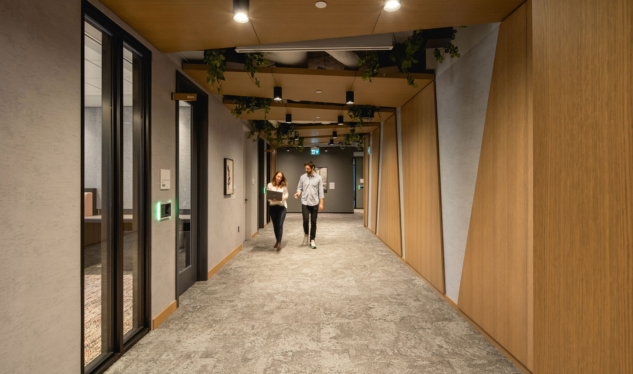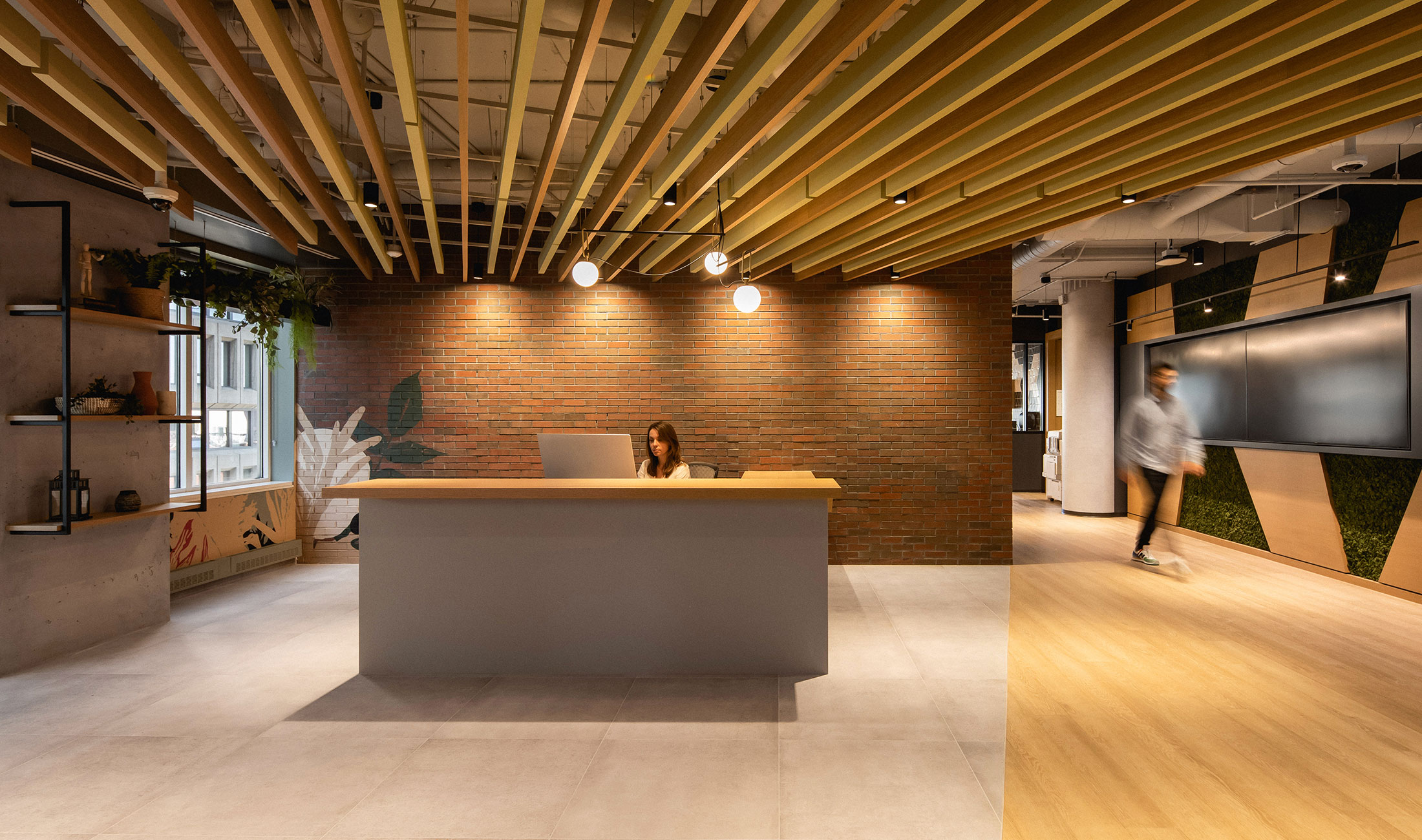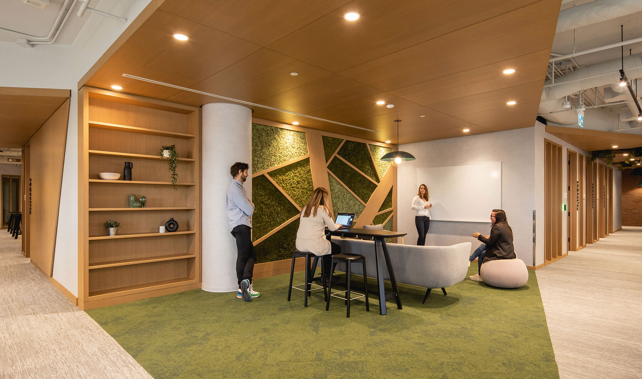 In addition to the abundance of daylight, the harmony between materials and strategically placed graffiti and planters helps tie-in the exterior environment as it gives the occupants a sense of outdoors, taking away from the traditional office approach.