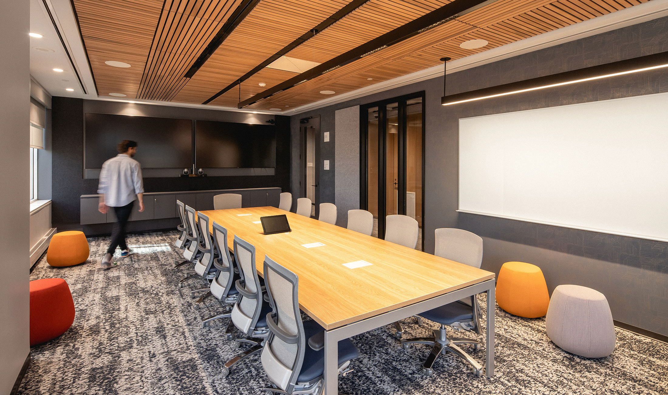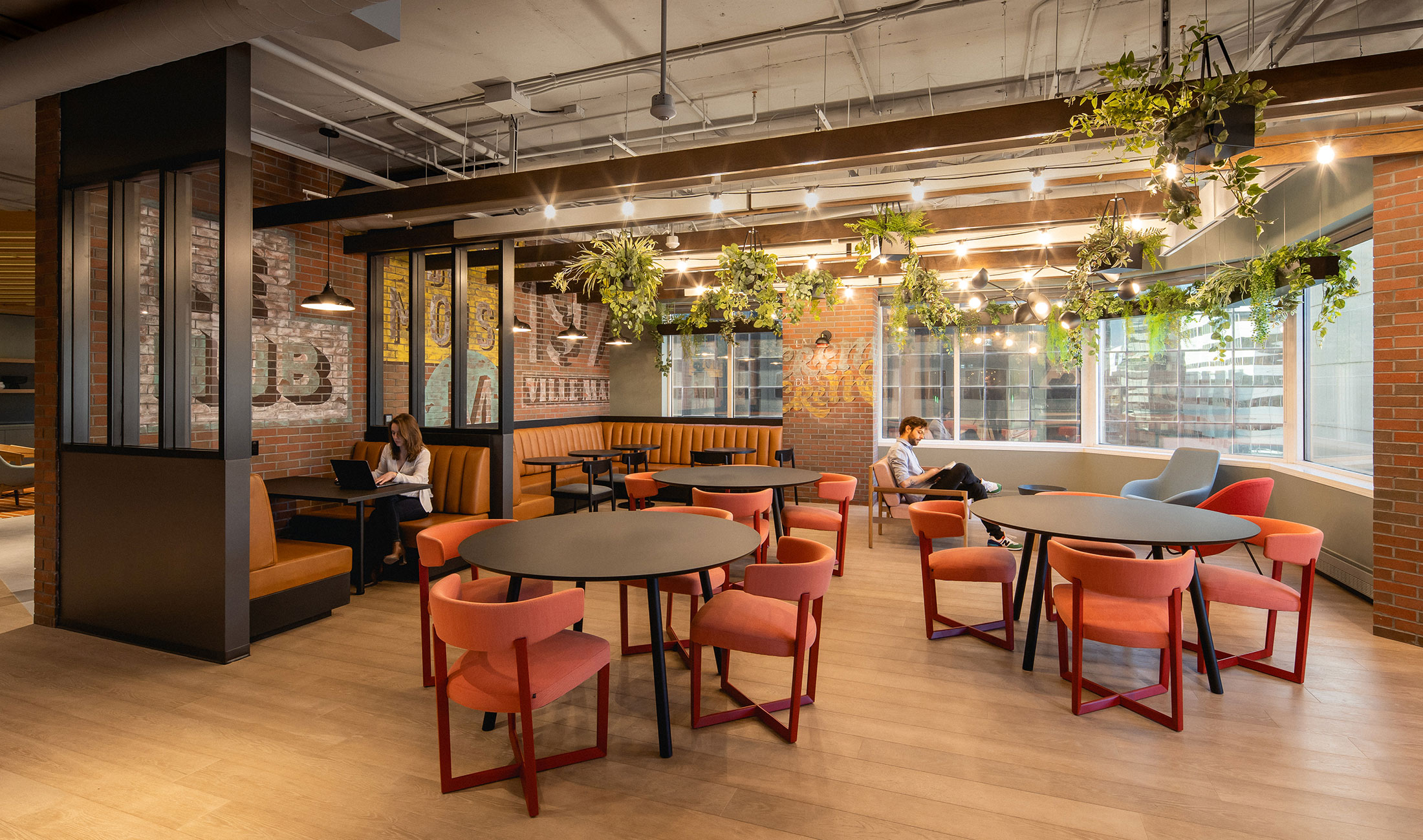 A vibrant space in the heart of downtown designed for a multinational high-tech company. A modern setting including focus rooms, meeting rooms, a multifunction training room, open workstations, public and private kitchens, and breakout areas to help promote gatherings and interactions between staff members.