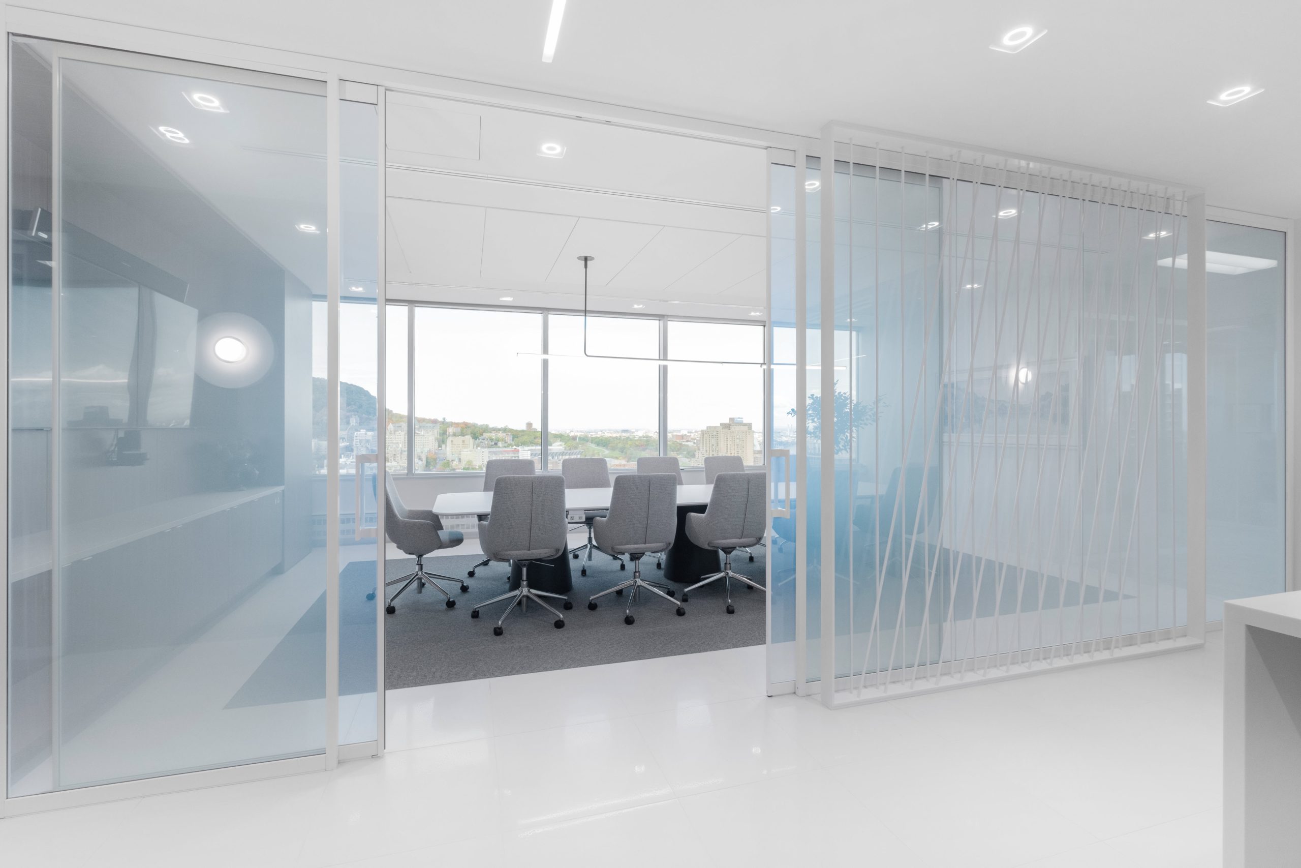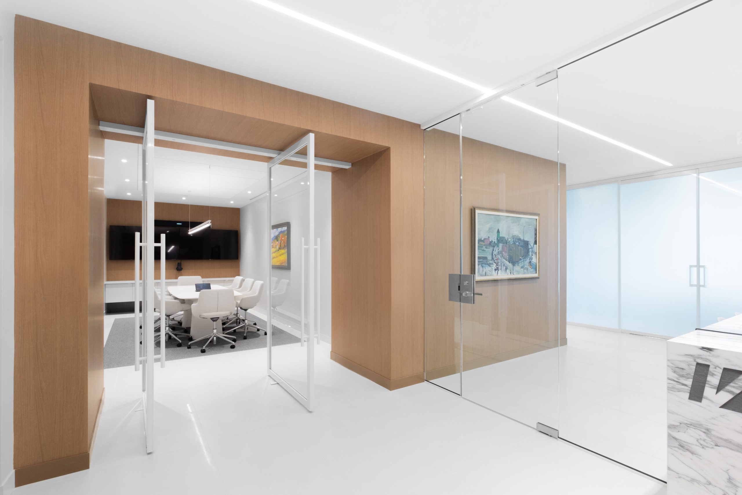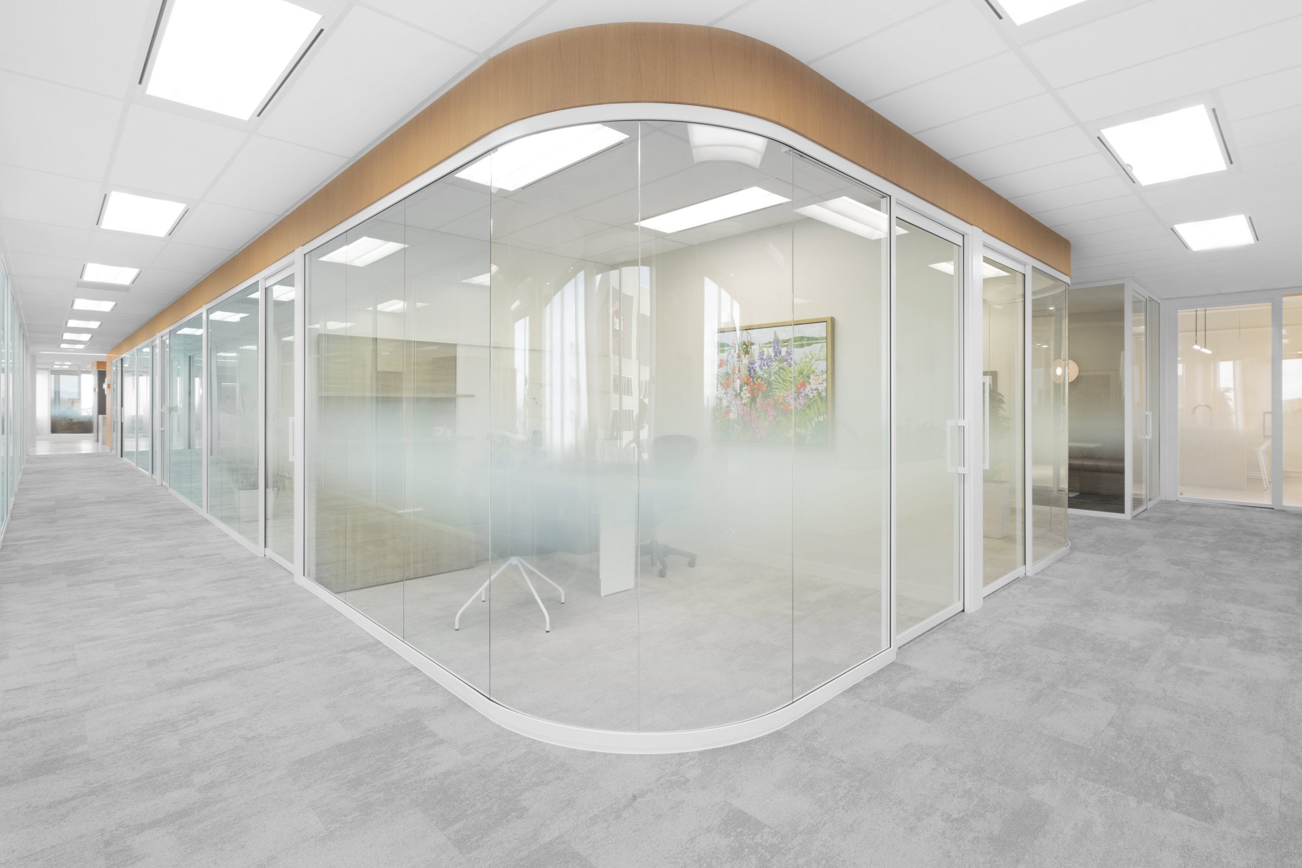 Folio Design’s meticulous attention to detail, commitment to sustainability, and focus on the unique requirements of Van Berkom culminated in a space that is both highly functional and visually stunning. Thoughtfully selected materials create a warm and inviting atmosphere, with wood-patterned wall coverings and rich fabrics adding depth and texture to the environment. This blend of aesthetics and practicality ensures the office is not just a place to work, but an inspiring space that supports the diverse needs of the team.